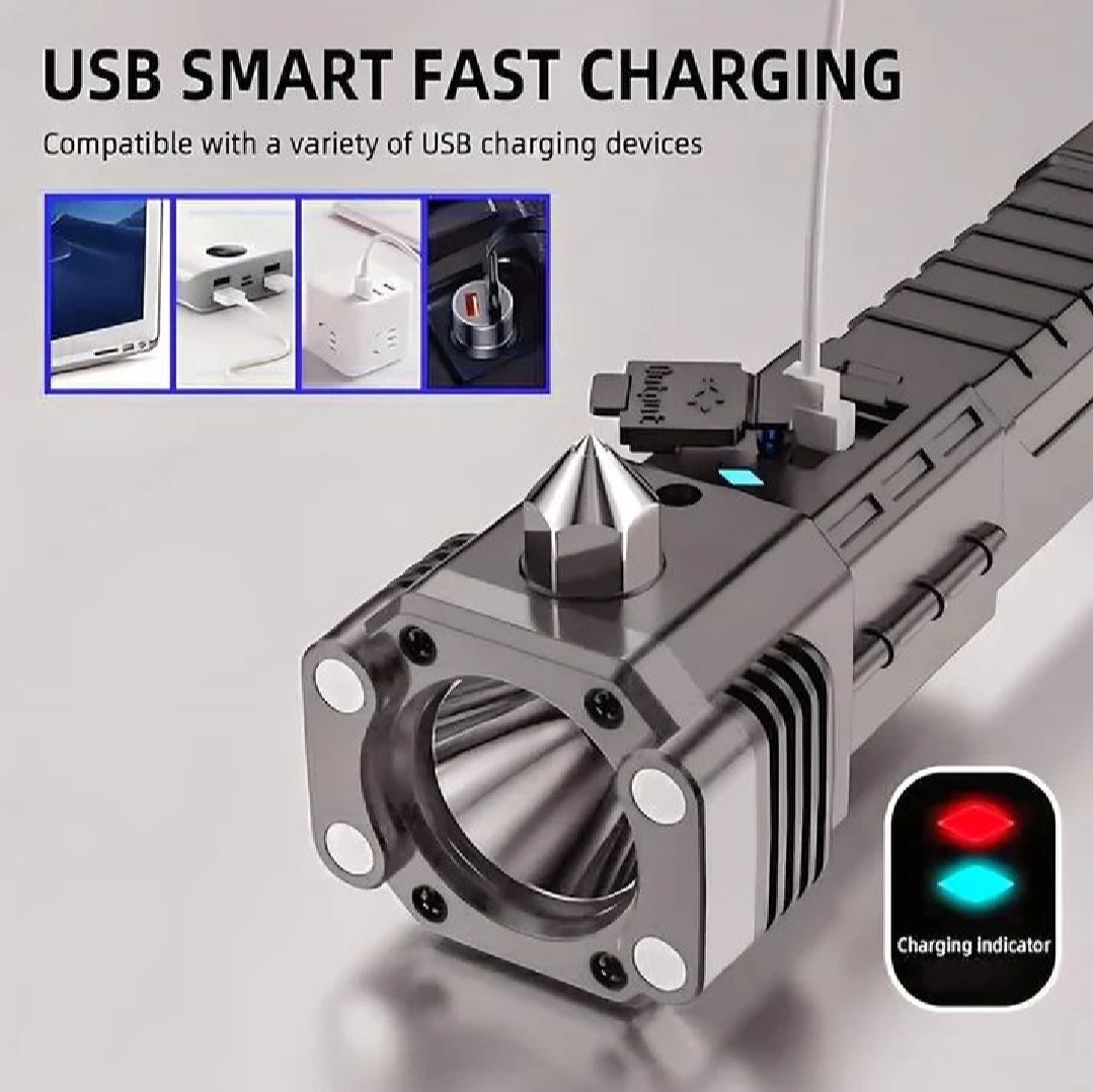 8-in-1 Multifunctional Design: Combines a flashlight, window breaker, seatbelt cutter, and more in one tool.